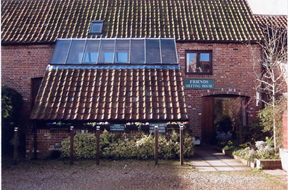 The Meeting House is in a small yard called Pegg's yard, which was named after Mr. Pegg an Aylsham builder. The yard has four houses in it and our Meeting House. We put 'window' boxes on the lower roof to brighten up the area for the residents and visitors/hirers coming to the building. As you can see from the posts and shingle there are three parking spaces. |